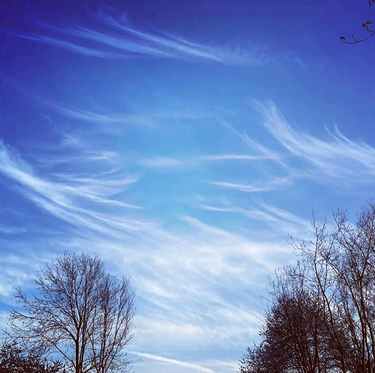 tientallen sluierwolken als aangespoeld zand in de lucht