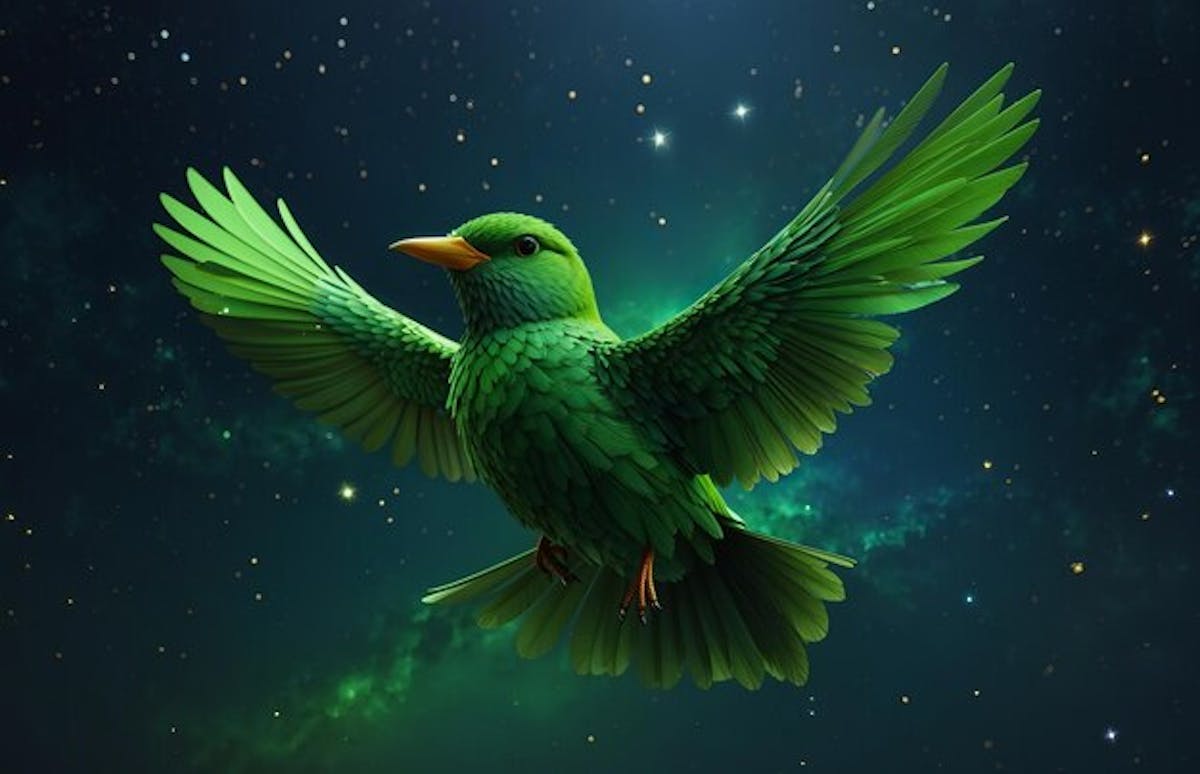 De groene vogel vliegt