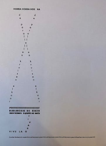 "Honderd jaar geleden bracht Antwerps dichter Paul van Ostaijen zijn bekendste werk ‘Bezette stad’ uit. Het enfant terrible stierf op amper drieëndertigjarige leeftijd aan de gevolgen van tuberculose in een Waals kuuroord, maar liet ons gelukkig eerst een karrenvracht aan poëzie na. Van Ostaijen speelde gretig met klank in zijn gedichten, in navolging van de jazz van de jaren dertig. Maar wat ik het meest intrigerende aan zijn werk vind, is de typografie die hij samen met Oscar Jespers vastlegde. Het geslaagde vormgedicht ‘unieverzum’ dat François van Vloten schreef, zou perfect in deze traditie kunnen passen en wil ik u dan ook graag als tip meegeven.