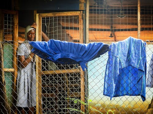"Eerlijk: ik was ook getriggerd door de foto. Maar toen kwam de tekst. Het beeld van de blauwe schooluniformen gekoppeld aan een beloftevolle toekomst, met die associaties van koningsblauw en Yves Klein, dat vind ik echt sterk. Ik heb zelf ooit een reisboek geschreven over de ontwikkelingsprojecten van de Vlaamse Gemeenschap in Mozambique, waarvan de titel luidde’ De brug van dromen’. Het trof me dat je zelf ook die kracht in Afrika (Ghana, veronderstel ik?) had onderkend: de kracht van dromen, iets waar wij in het verstarde Europa nauwelijks nog aan toekomen, bezig als we zijn met angst om verlies.